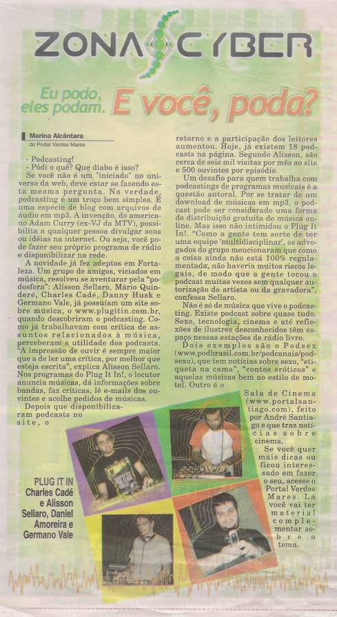 Canhoto que tem a cabeça feita por música, cinema e literatura. De tanto dançar conforme a música, passei a contribuir para que outros fizessem o mesmo. Fui DJ residente e produtor da festa Plug It In! (lendário evento na cena independente de Fortaleza). Também já coloquei o povo para dançar em outras festas, eventos proprietários etc.